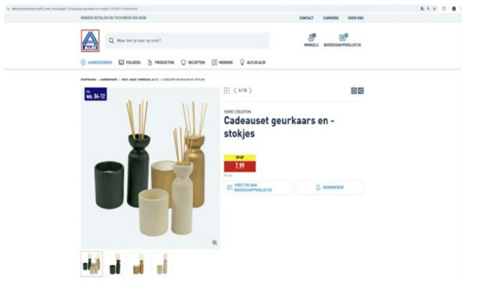 Aldi’s Dutch website advertised the following reed diffusers and candlestick holders for sale: