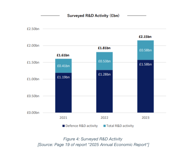 At page 19 the report considers Research and Development (R&D) expenditure by the respondents, for the period 2021-2023, with a figure (copied below as Figure 4). The figure shows a clear trend of increasing R&D expenditure, with the proportion attributable to defence R&D also significantly increasing year-on-year. Like any industry, R&D expenditure is critical to developing innovative technologies and capabilities, as well as improving existing ones. This trend of growing R&D expenditure is great to see and bodes well for the development of new technologies by the respondents. I expect R&D expenditure will continue to grow, despite cost pressures, in order for respondents to maintain their footholds in the defence marketplace.